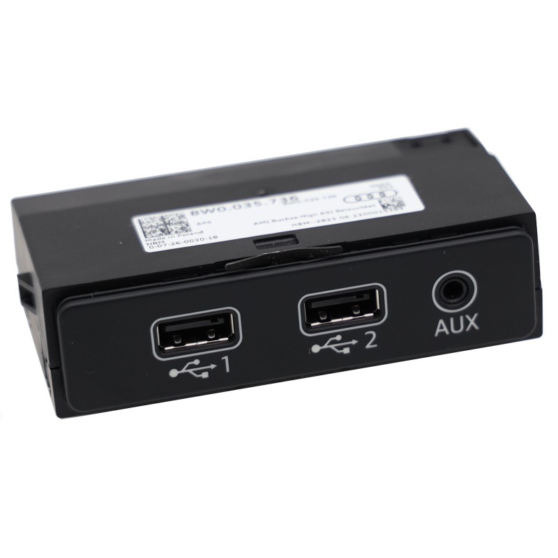 Adapter USB i AUX do Audi. Oryginalne gniazdo (port) USB Audi 8W0035736. Port NOWY, fabrycznie zapakowany. Numer OE 8W0 035 736.