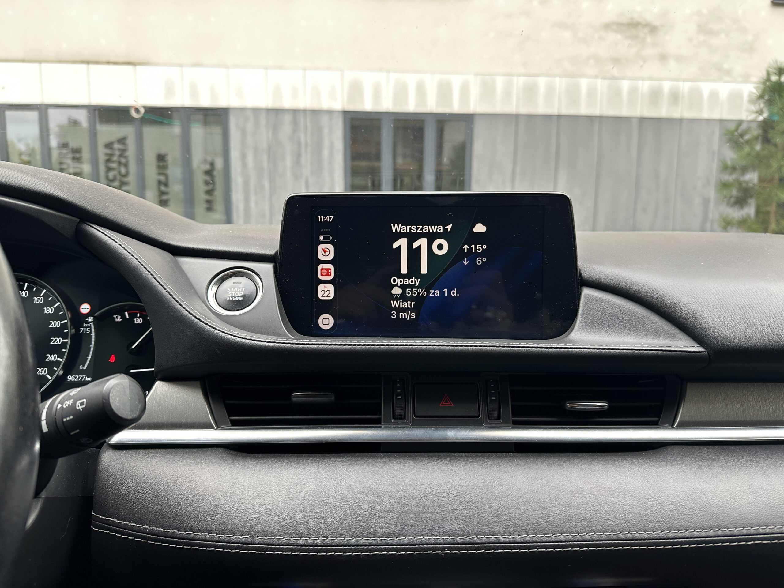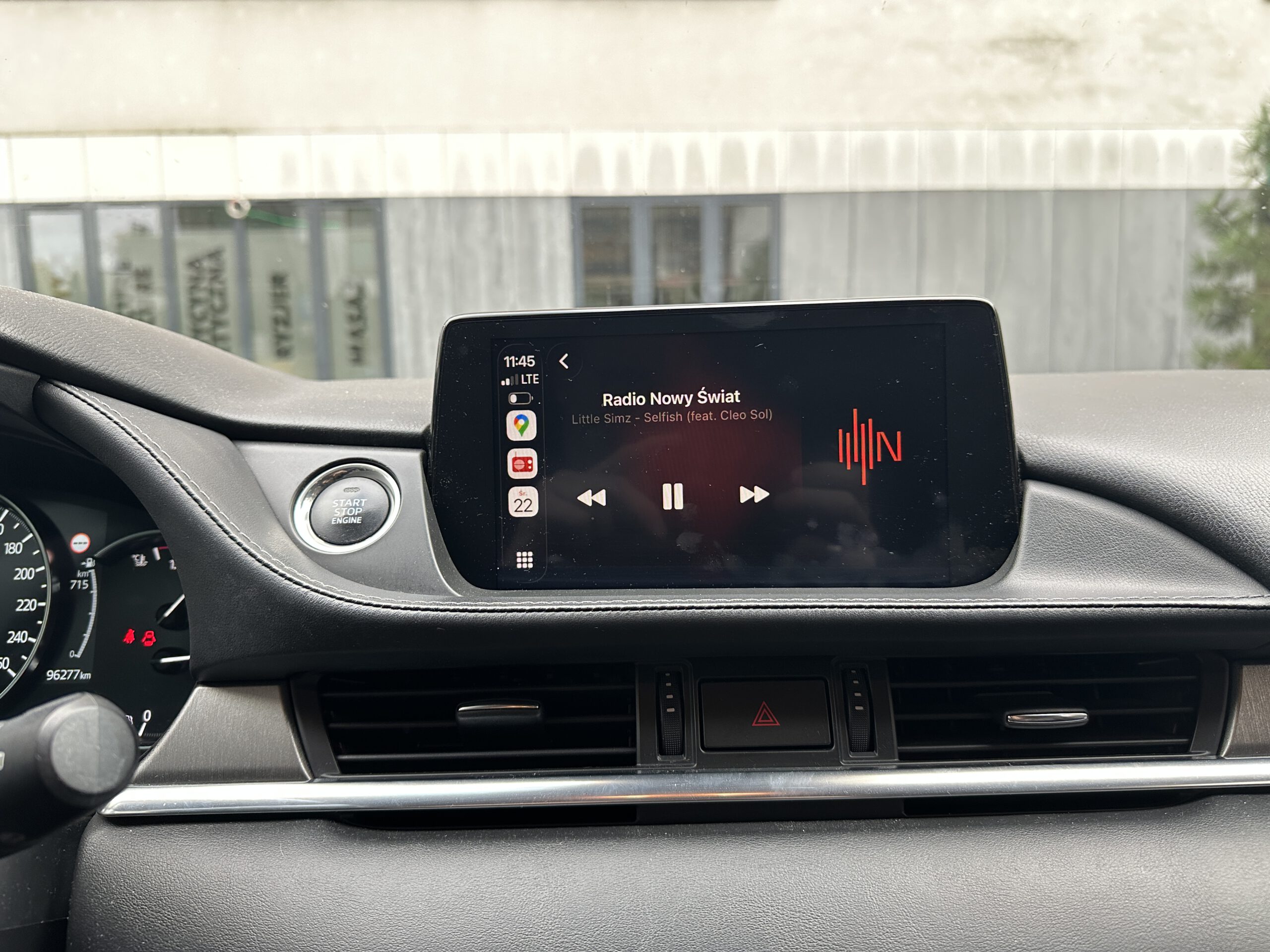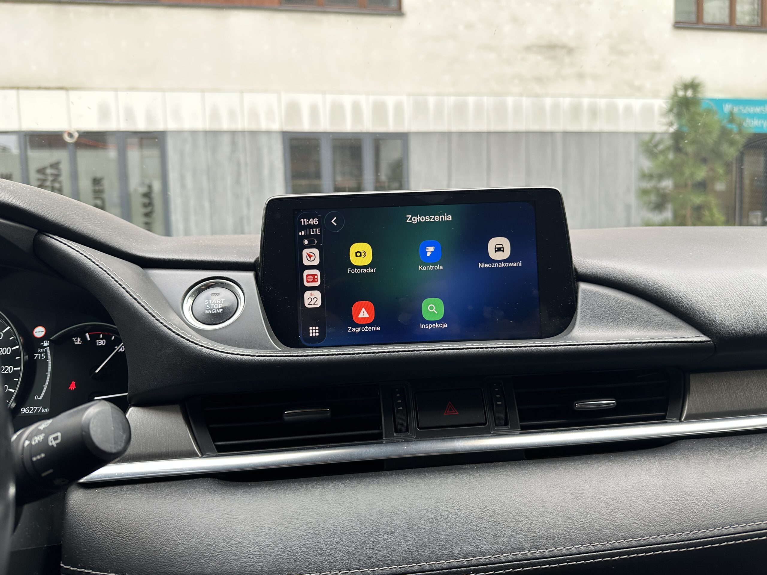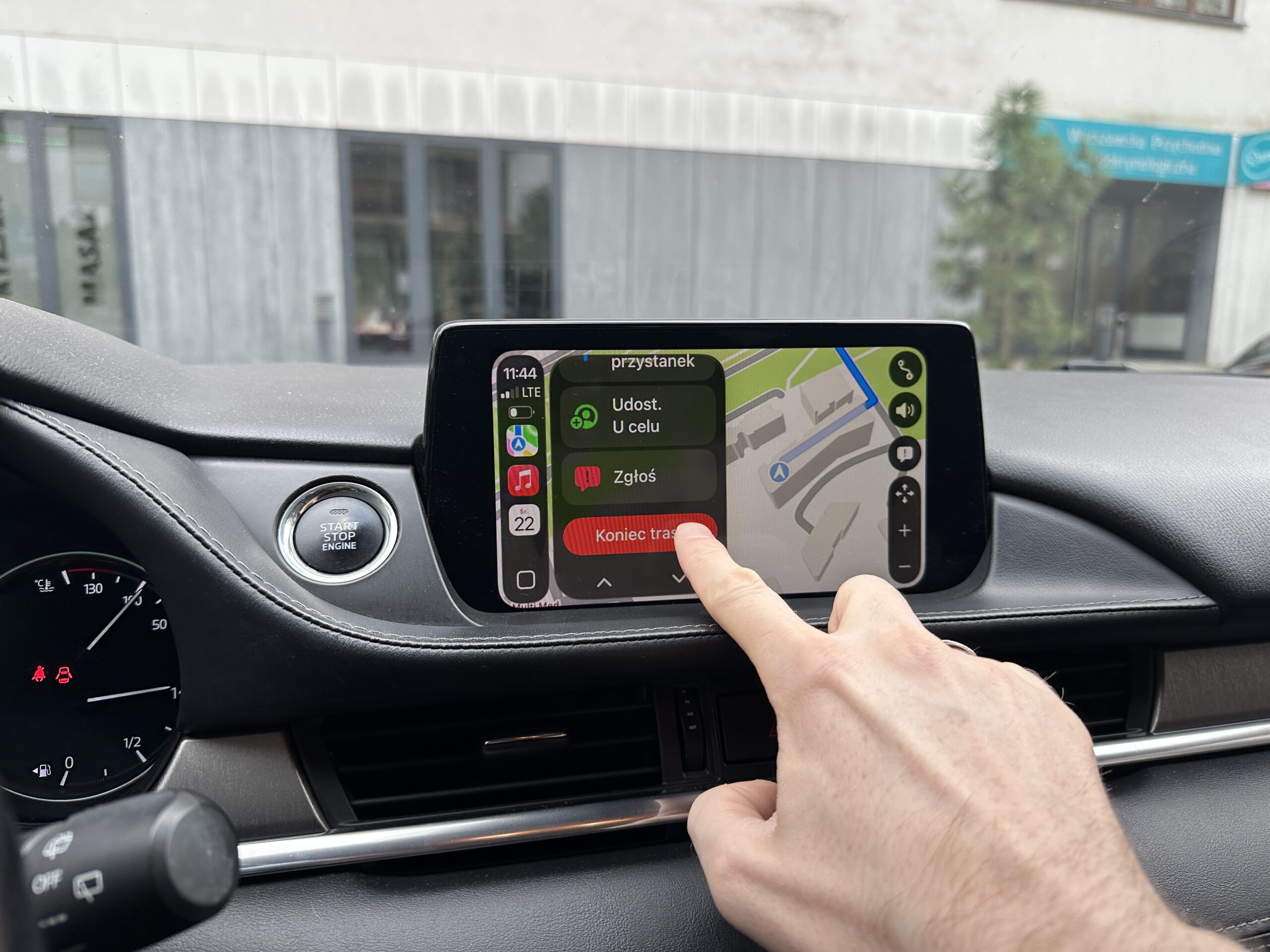 Poniżej Yanosik w ramach CarPlay (Mazda 6)