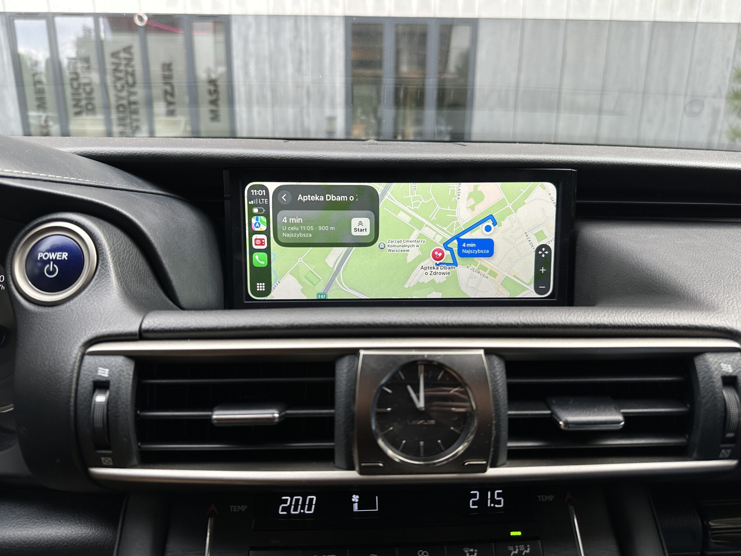 Poniżej CarPlay w Lexusie IS300 z mapą Apple