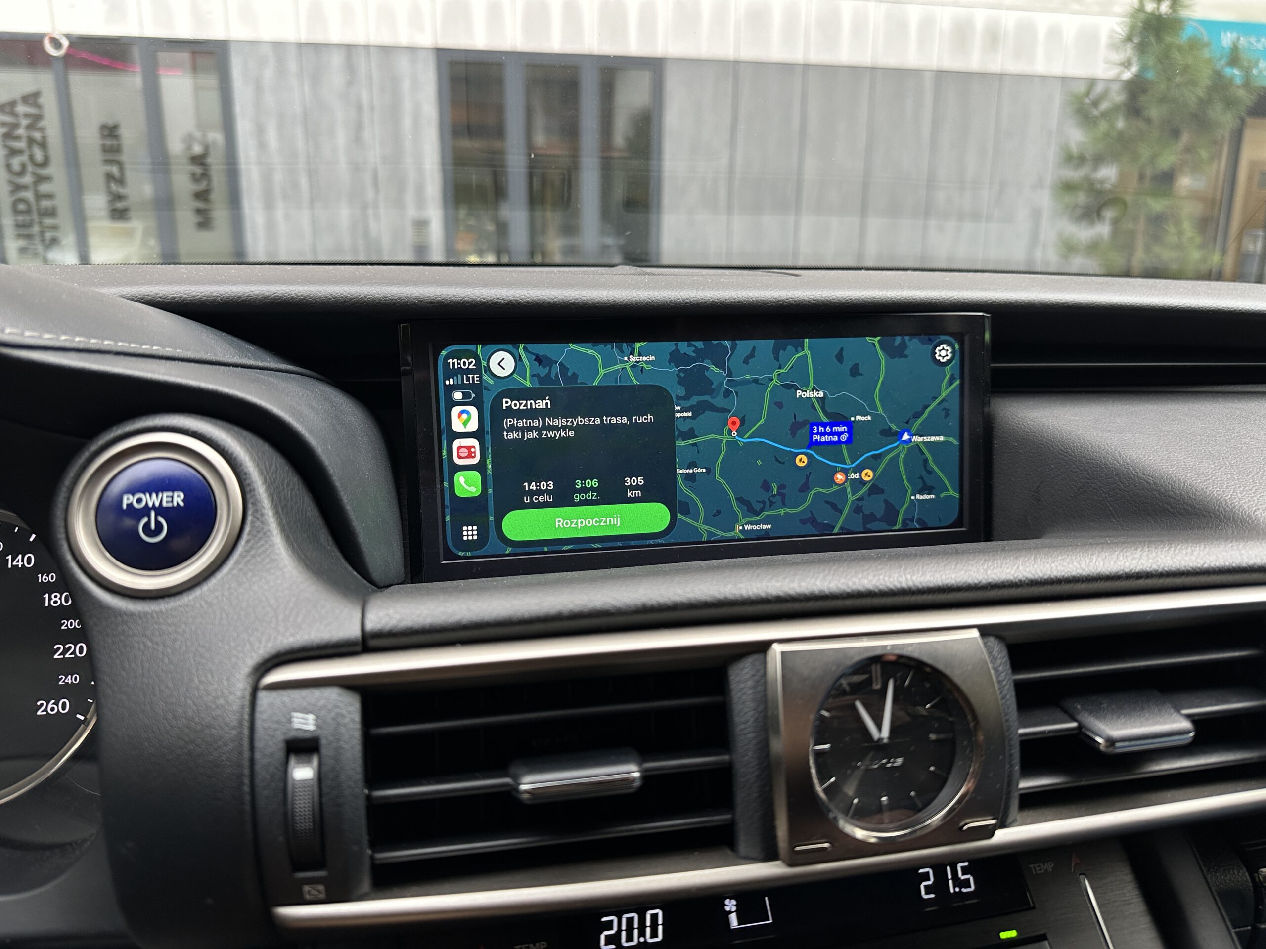 Poniżej Lexus IS300 z mapą Google w ramach CarPlay