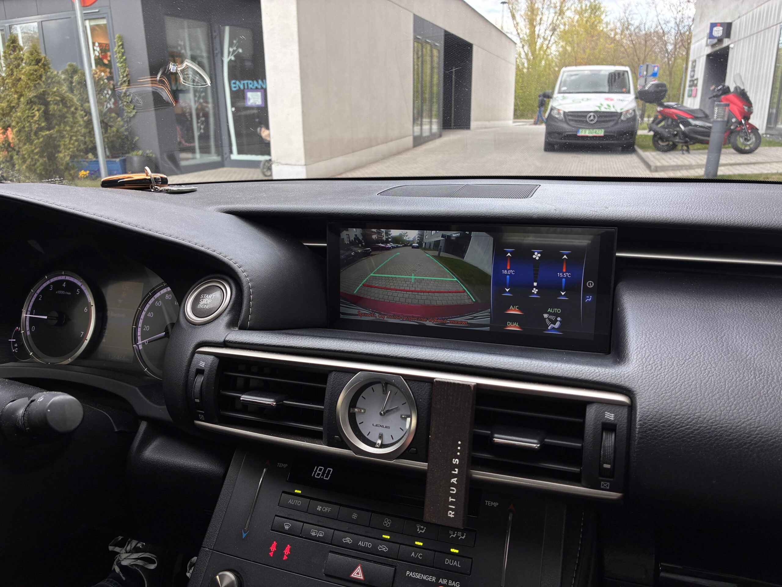 Poniżej fabryczna kamera cofania w Lexusie na większym i dotykowym ekranie