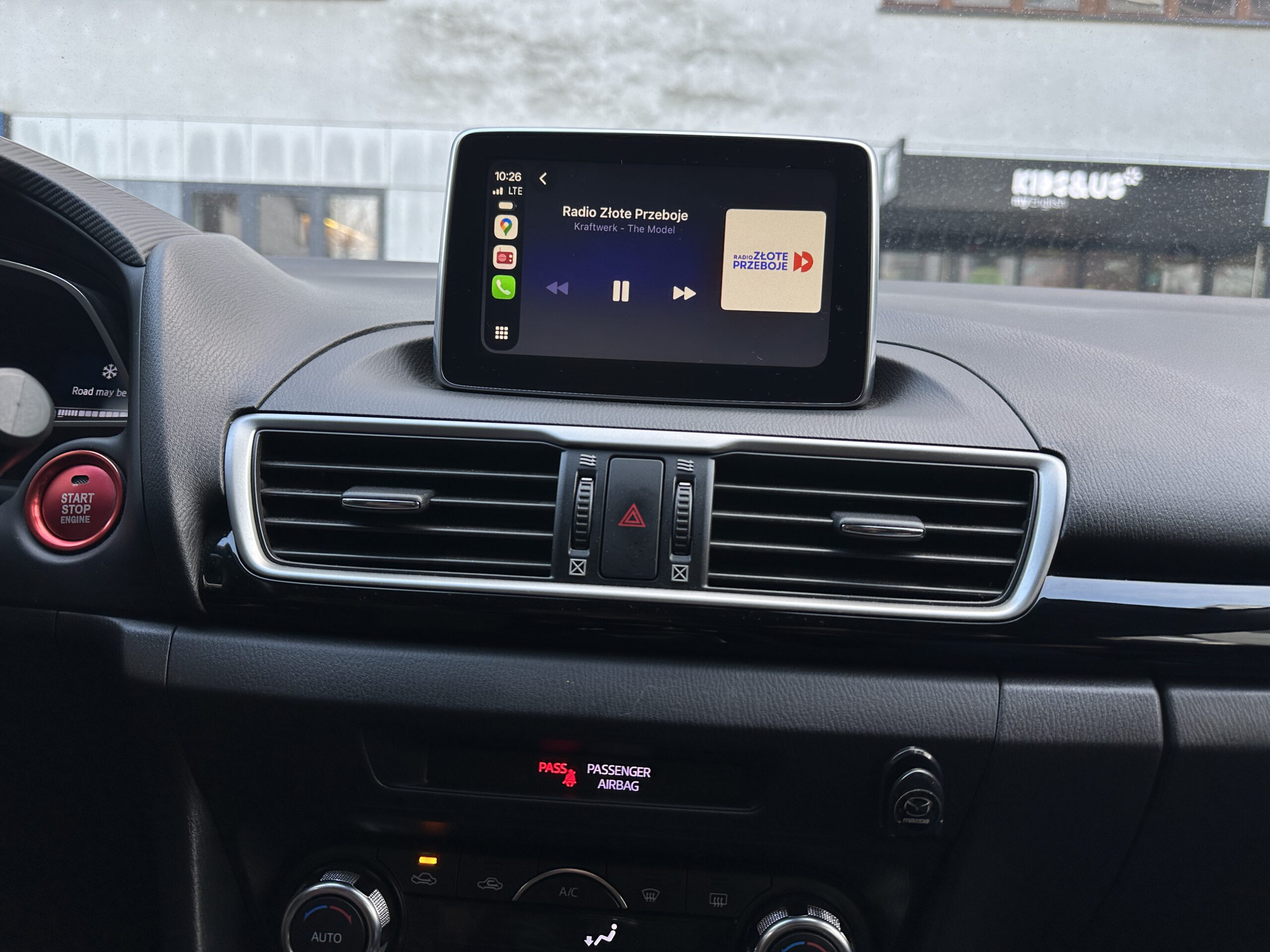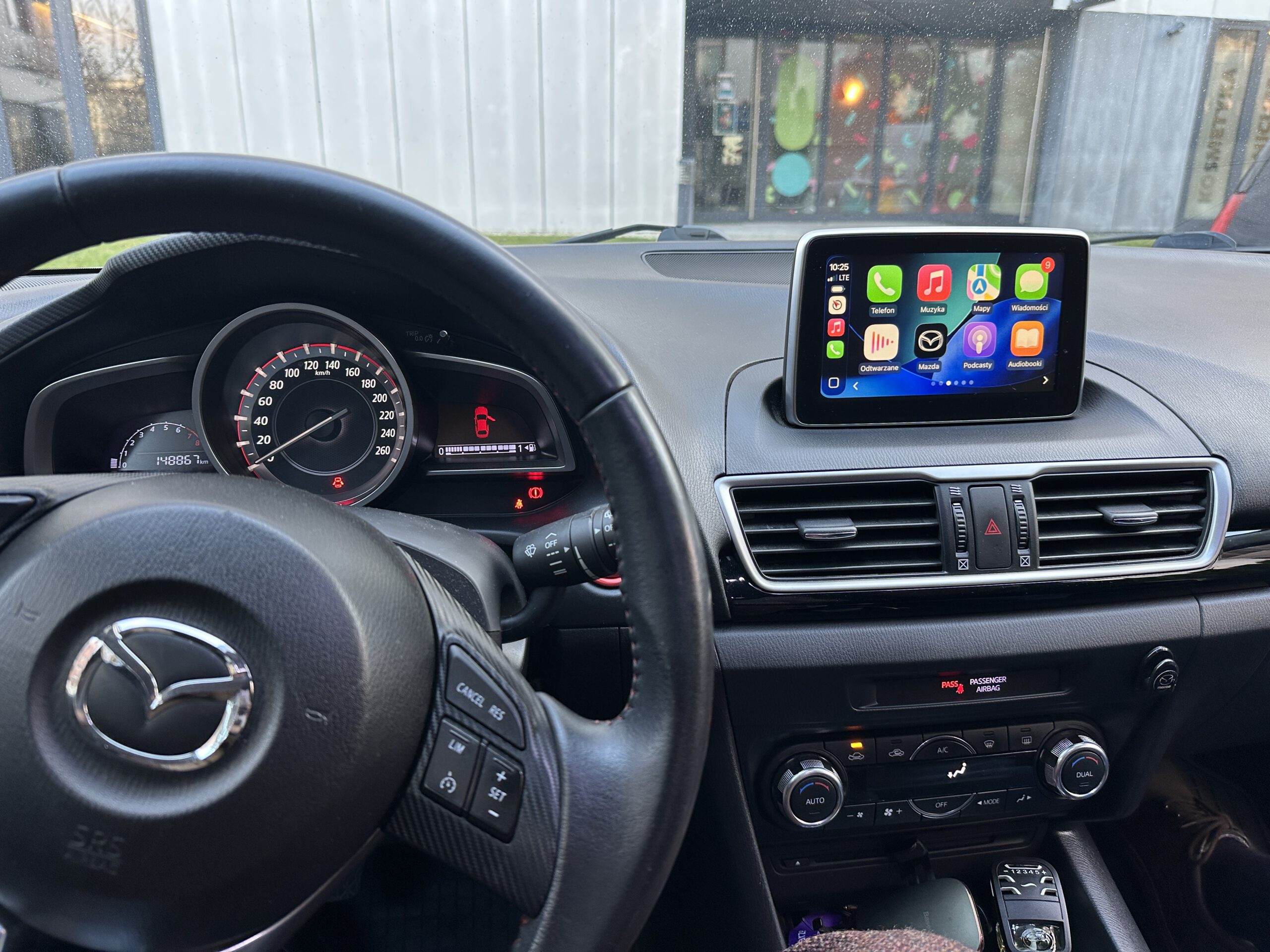 Poniżej Mazda 3 z menu CarPlay
