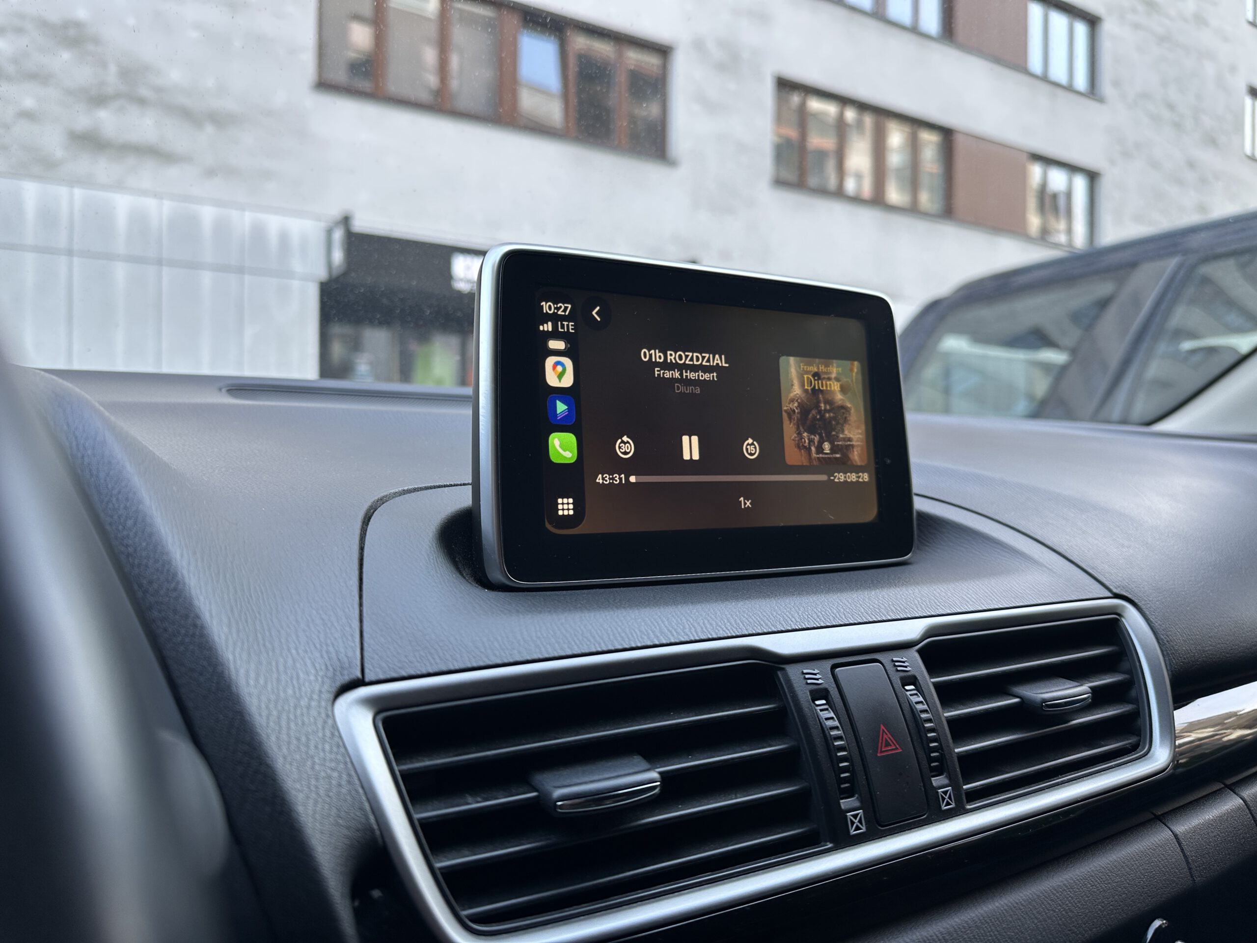 Poniżej opcja słuchania audiobooków w ramach CarPlay w Maździe