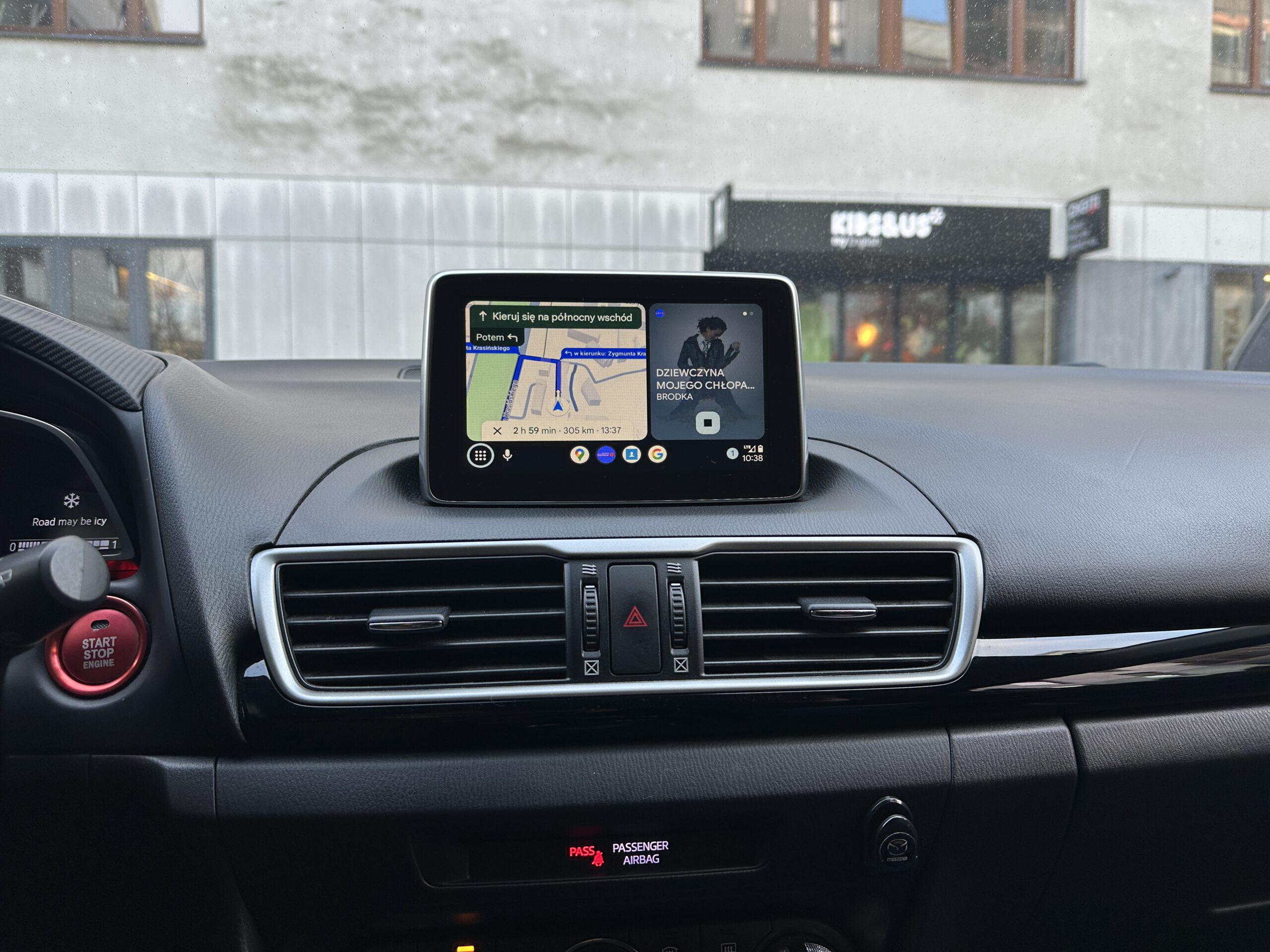 Poniżej mapy Google w ramach Android Auto w Maździe 3