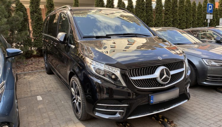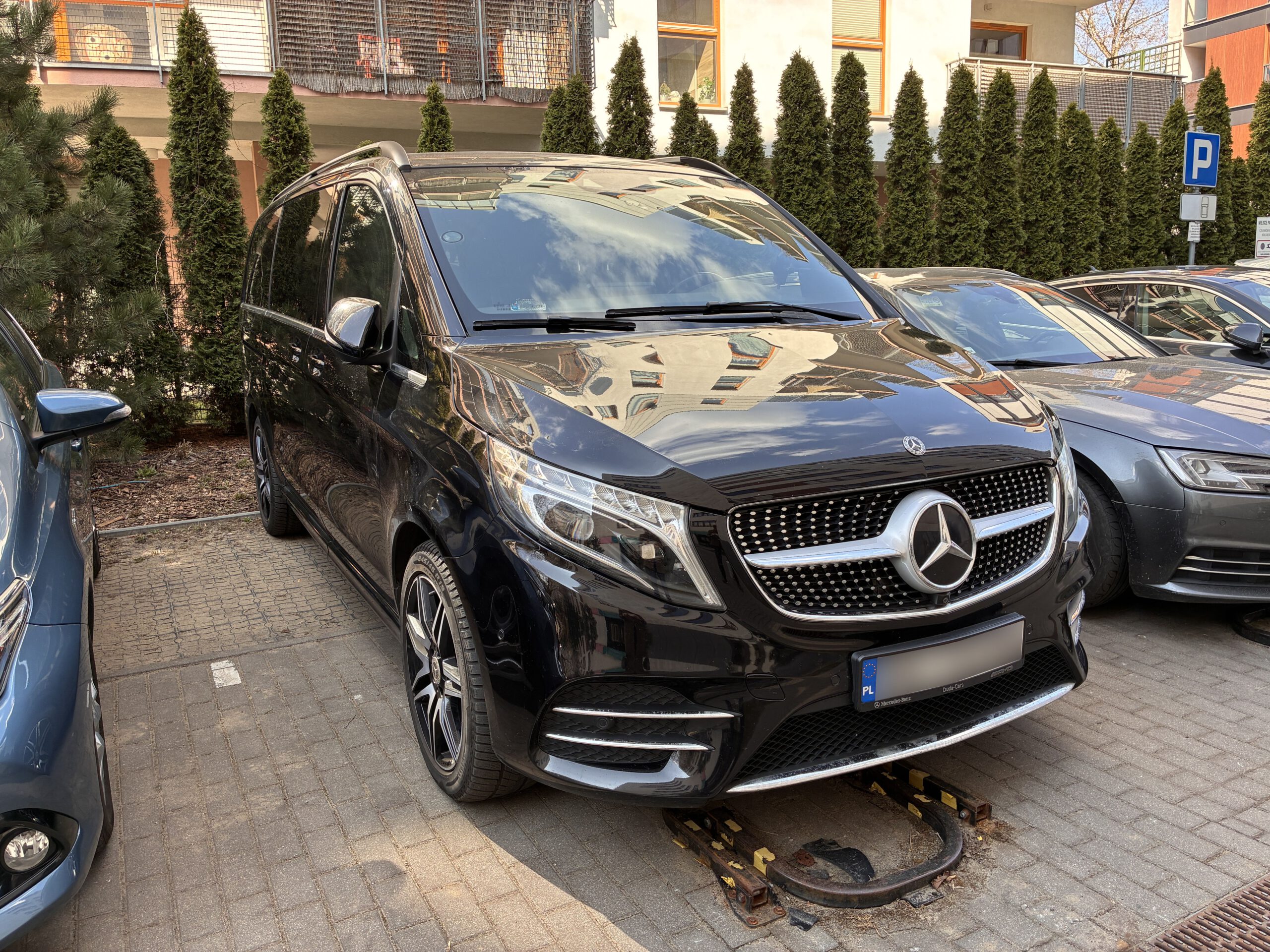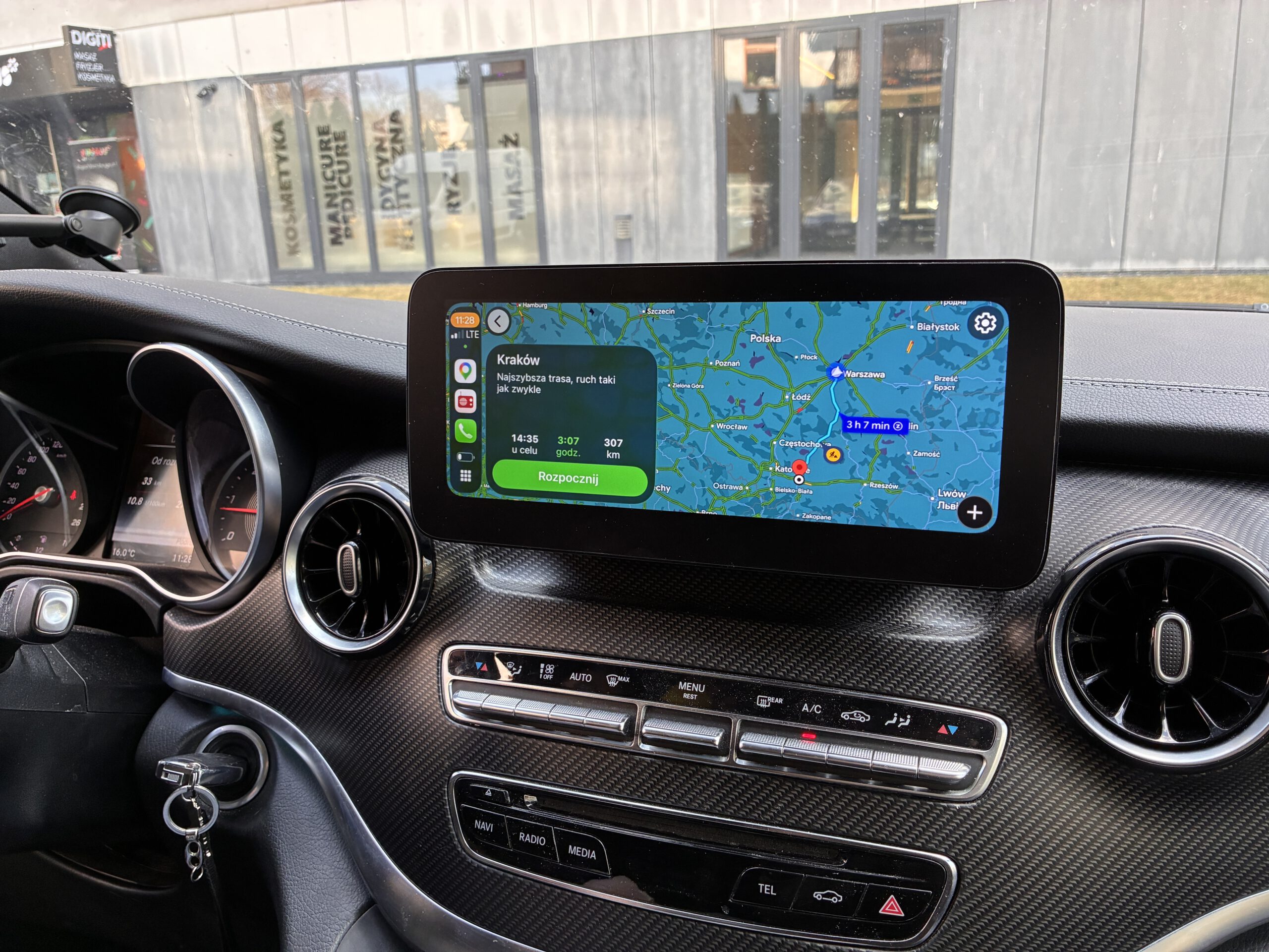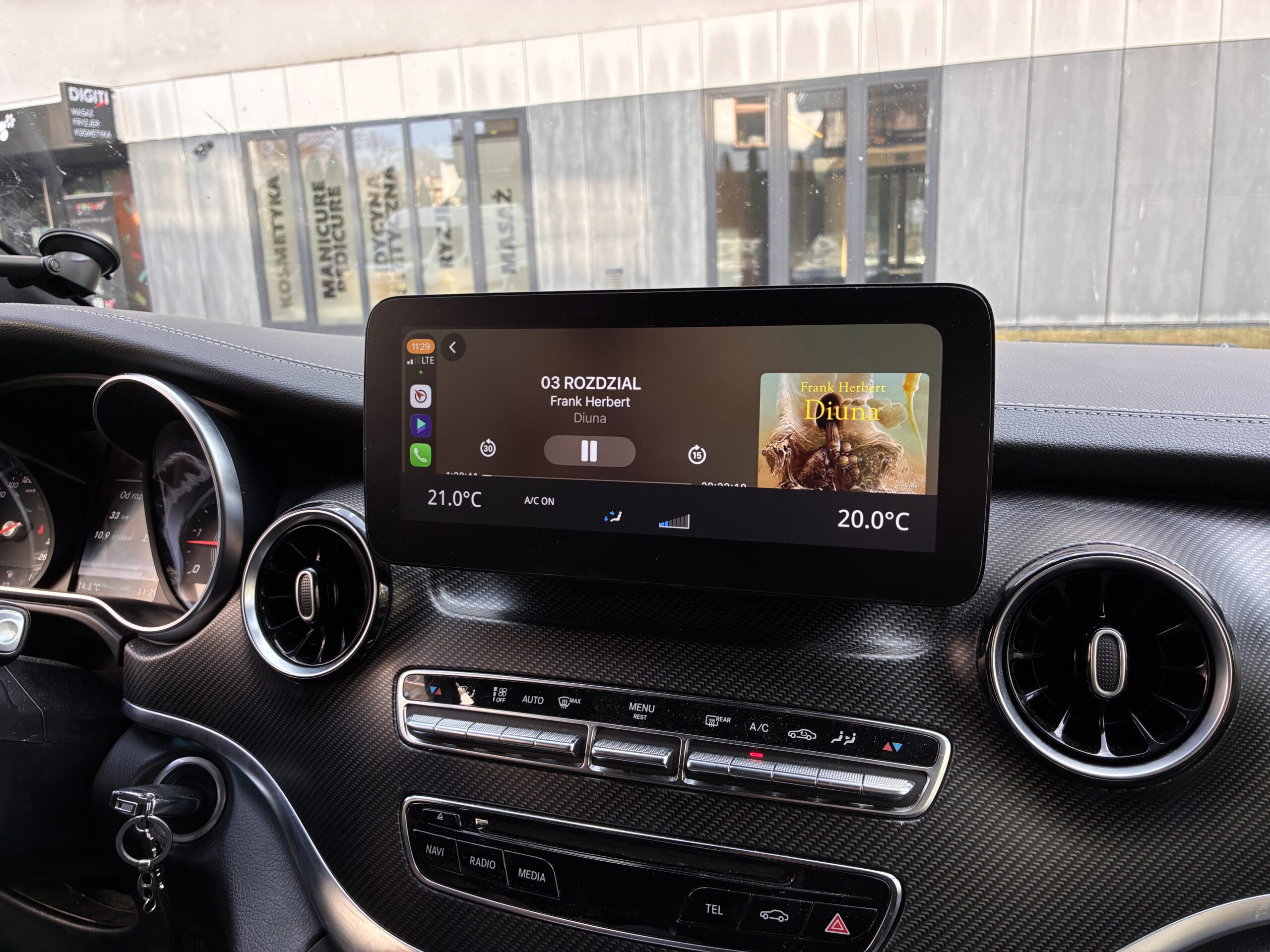 Poniżej Mercedes W447 V klasa z wymienionym ekranem i CarPlay
