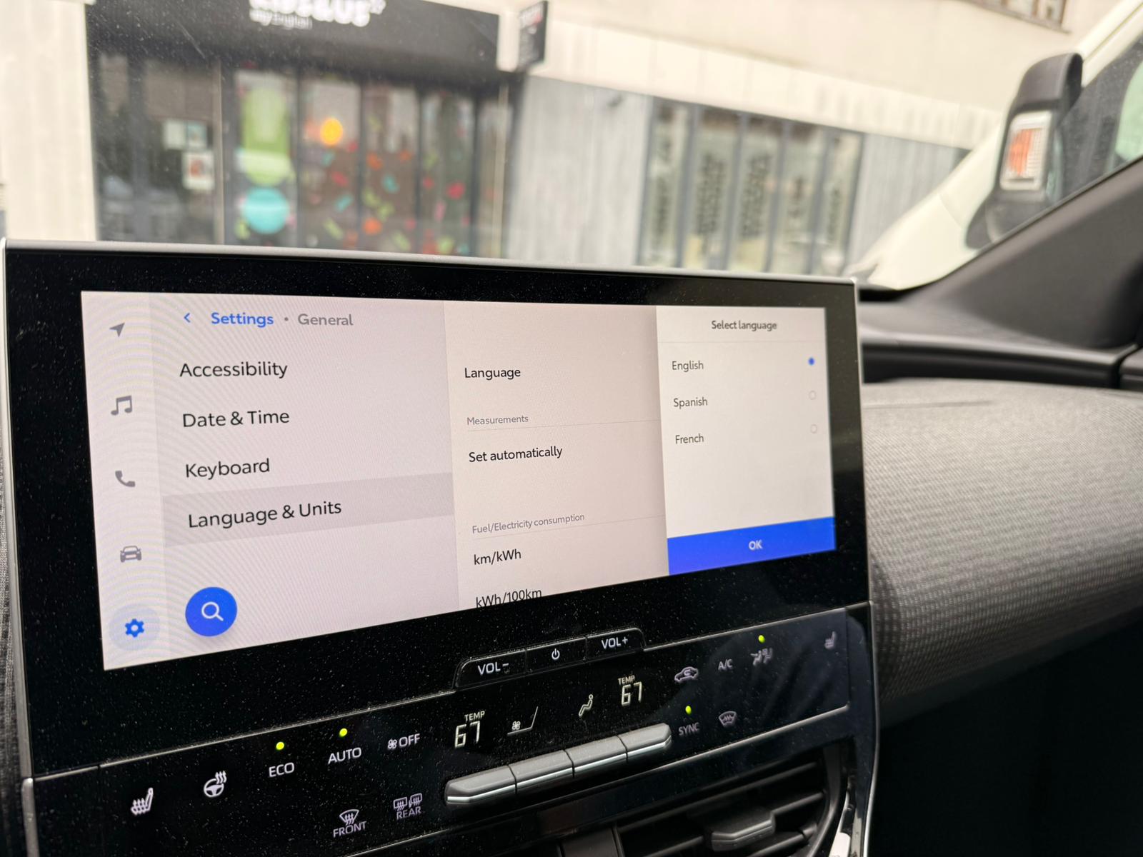 Poniżej radio w Toyocie bZ4X po konwersji USA na EU