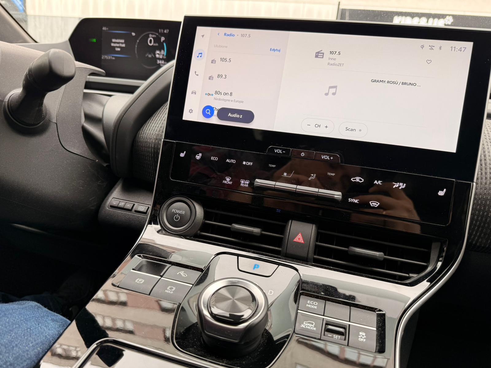 Poniżej radio w bZ4X (2025) po konwersji (język polski w radiu)