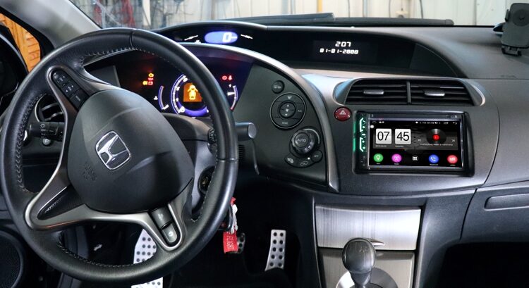 Rzecz oczywista, ale ten wpis będzie się odnosił do auta jakim jest Honda Civic VIII generacji, modele Hatchback. Popularnie te Hondy nazywane są UFO i produkowane były w latach 2006 – 2011. Poza tym rzecz dotyczy tu modeli z podstawowym radiem, czyli nie dotyczy to Hondy z fabryczną nawigacją. Dla ułatwienia, wnętrze Hondy Civic, o której tu mowa wygląda tak: