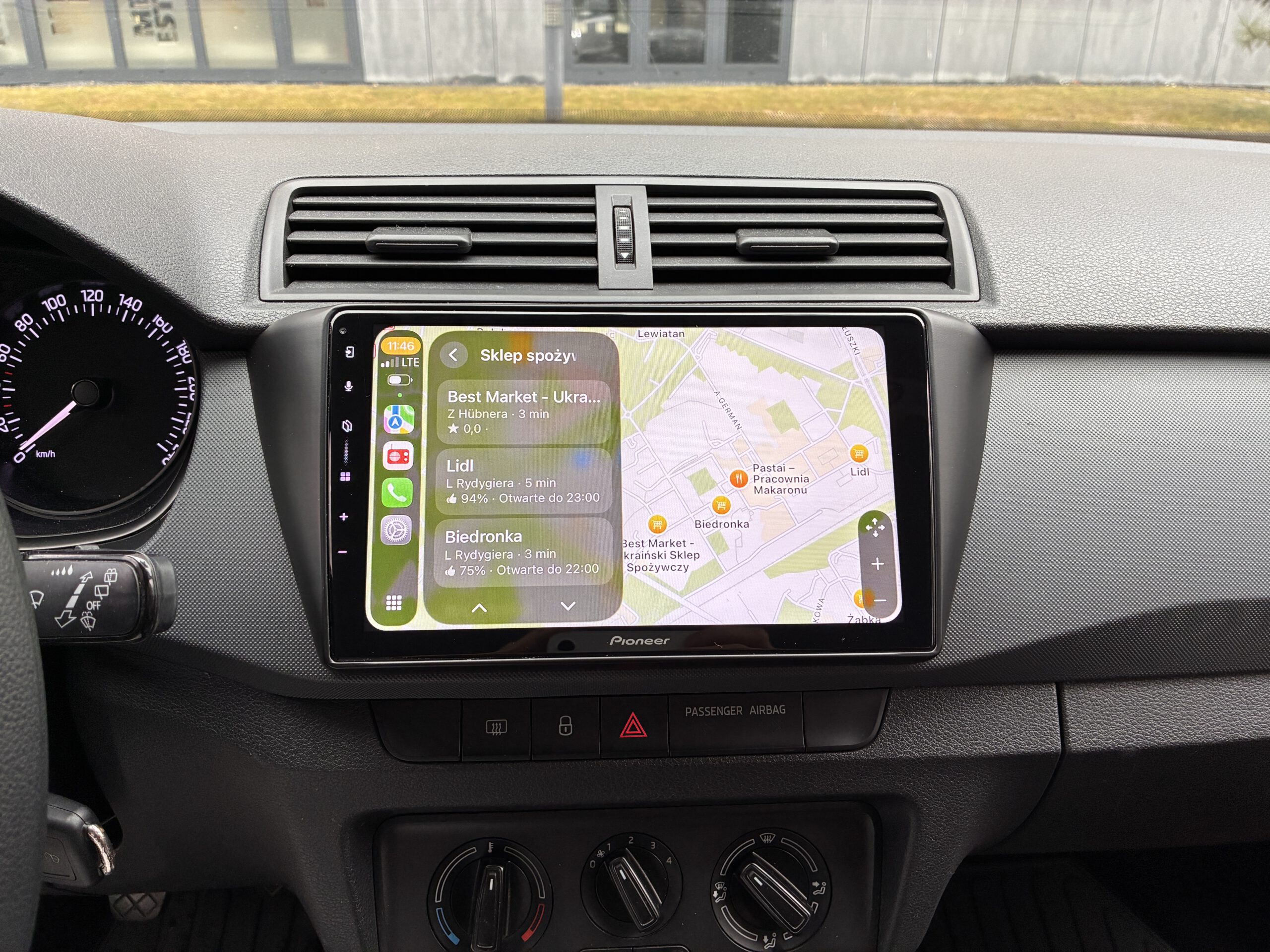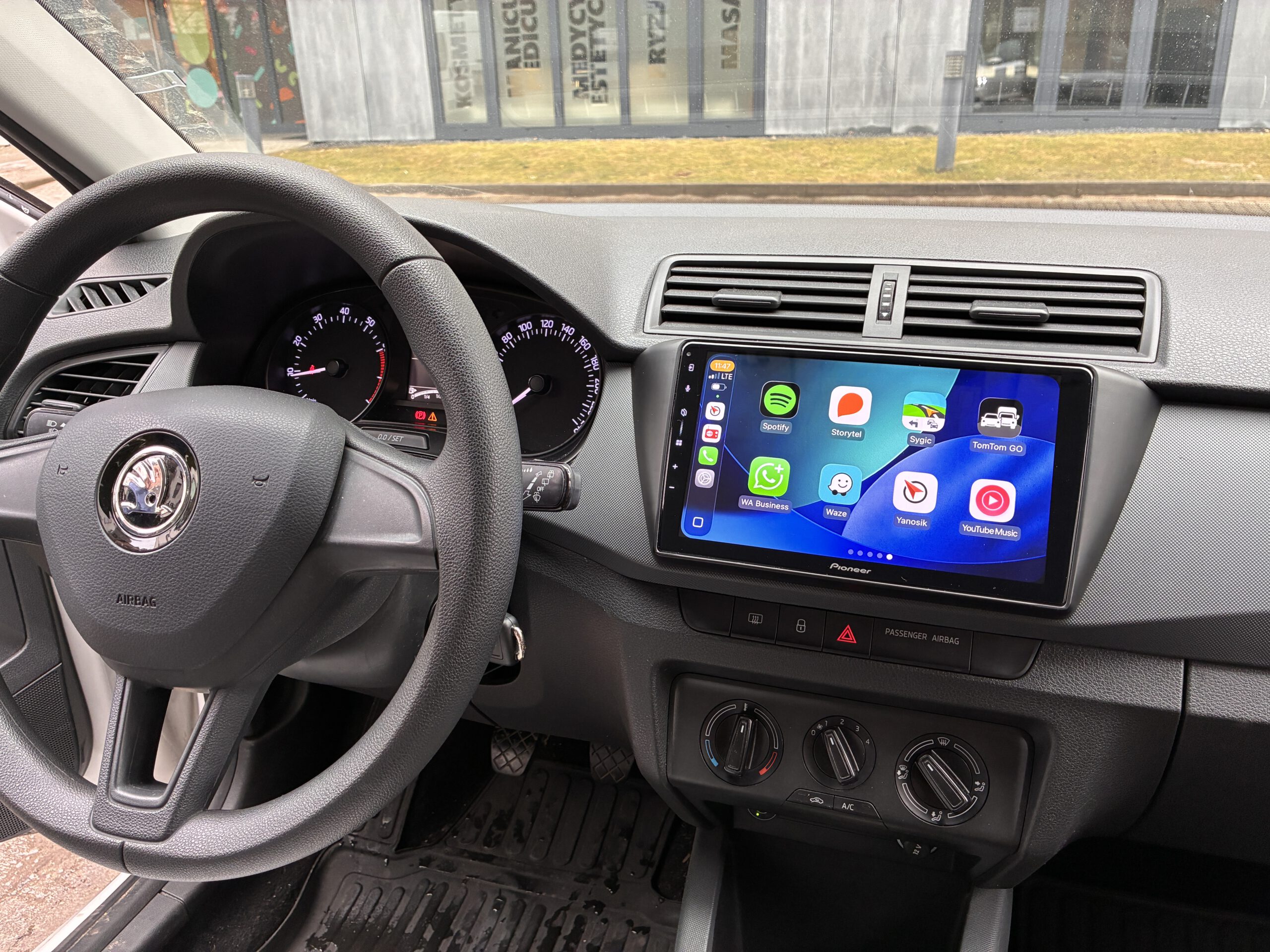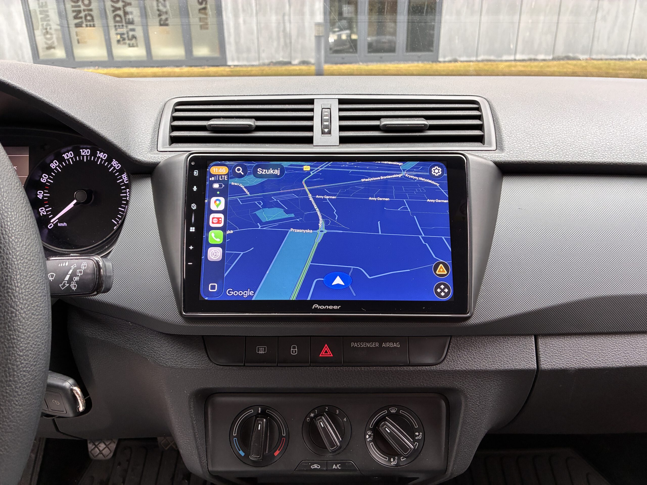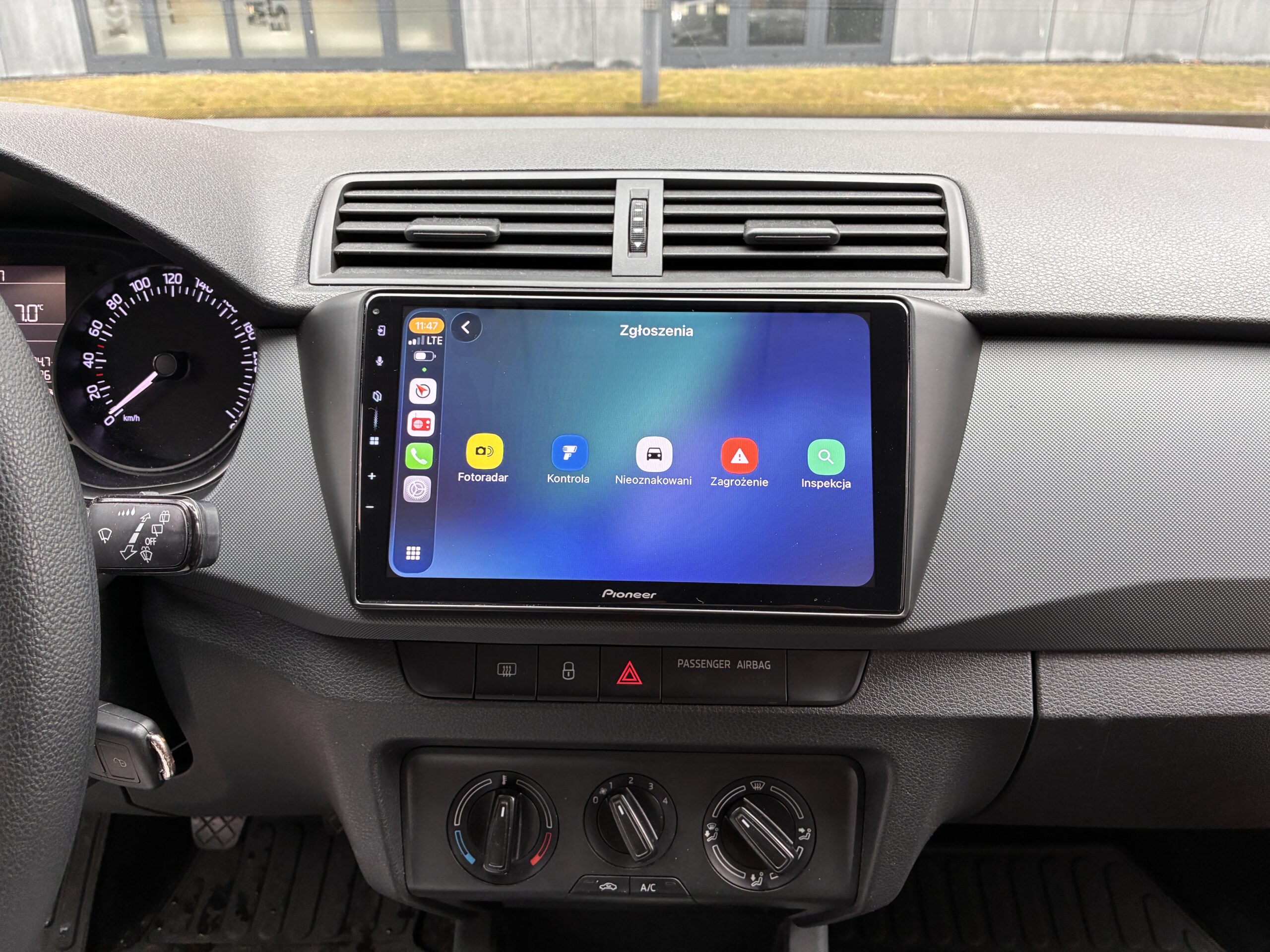 - wymiana radia na jednostkę Pioneer z 9″ ekranem (wyjściowo klient miał radio Alpine 1 DIN)