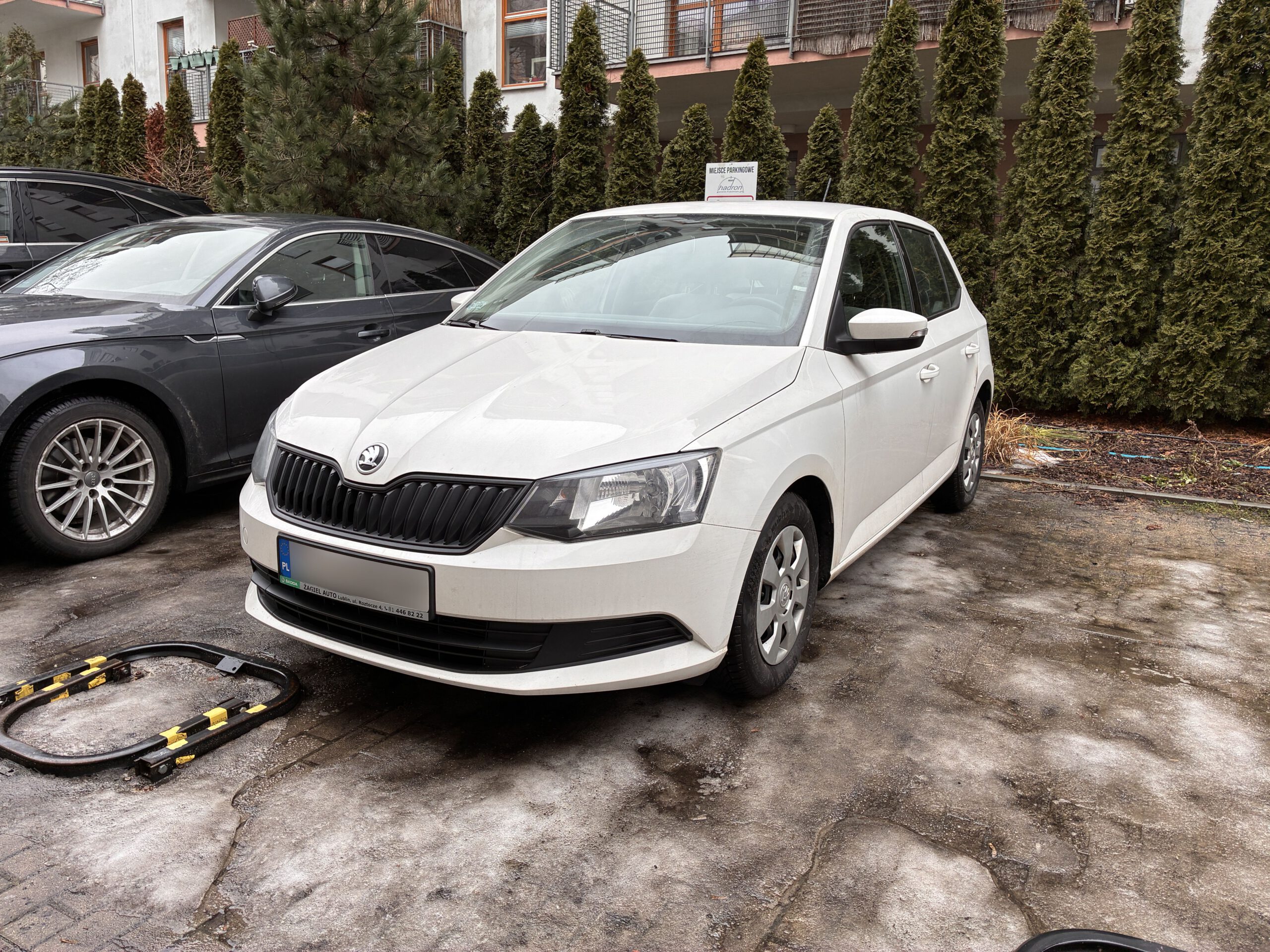 Poniżej Yanosik w Skodzie Fabii