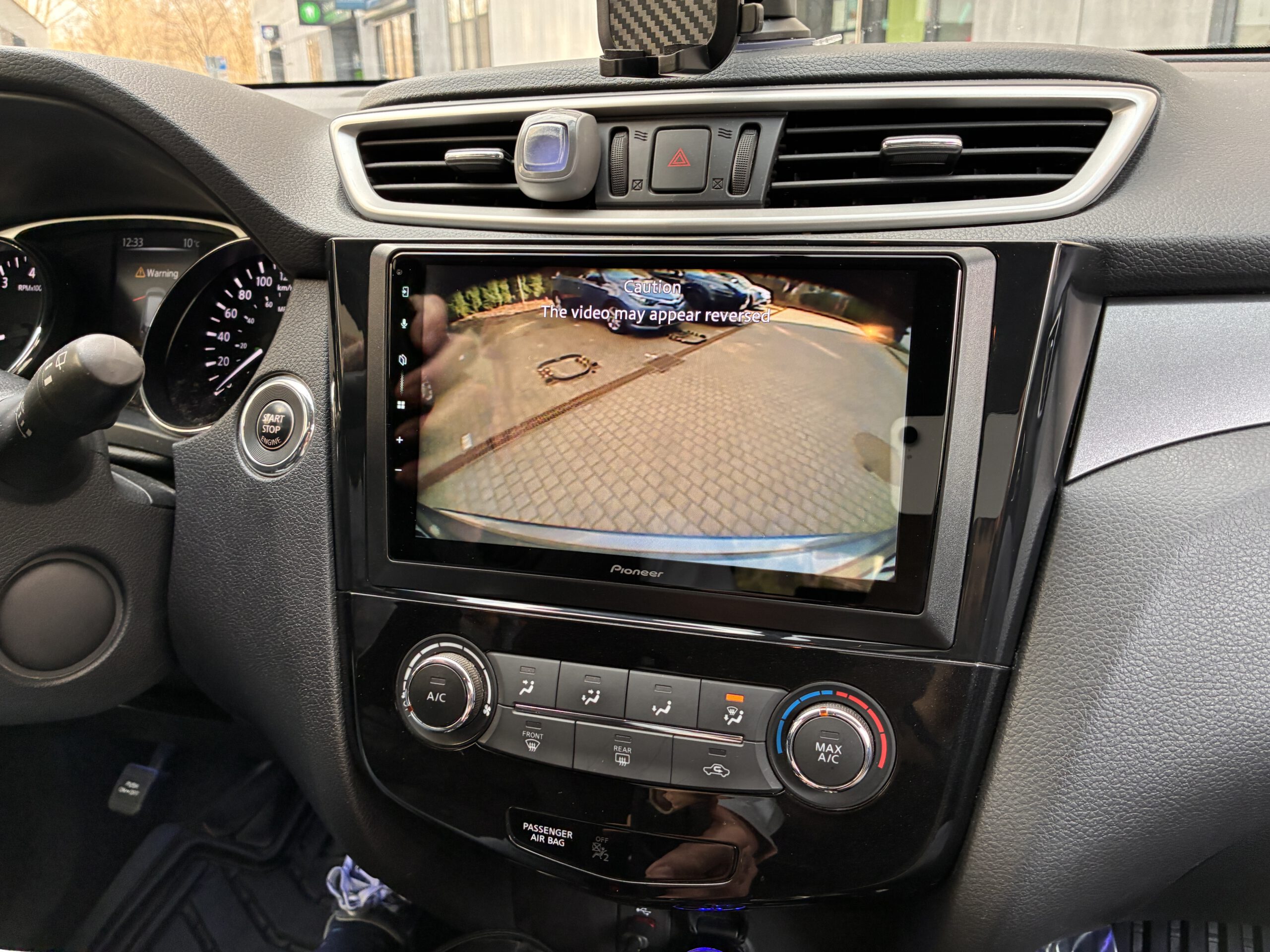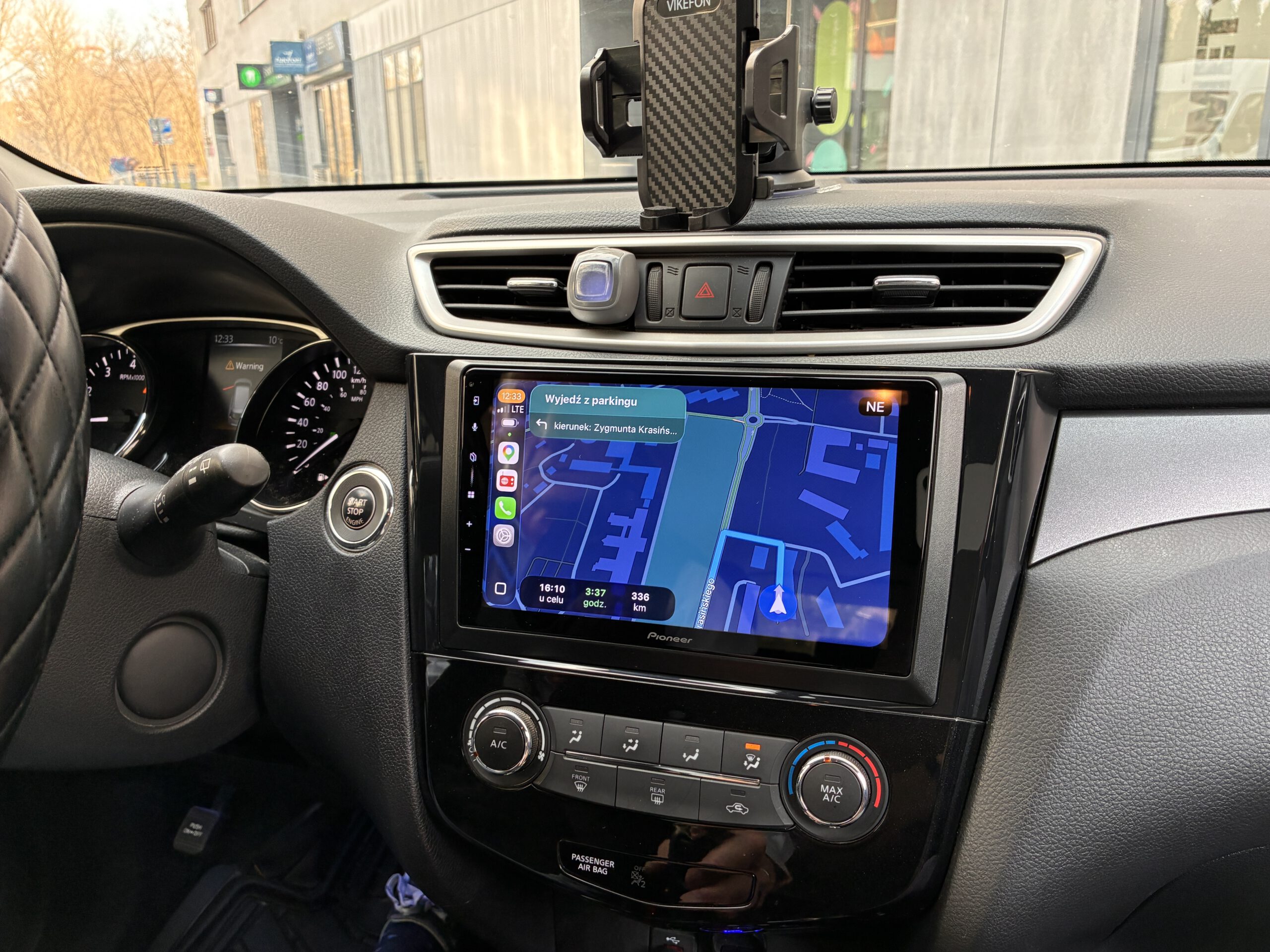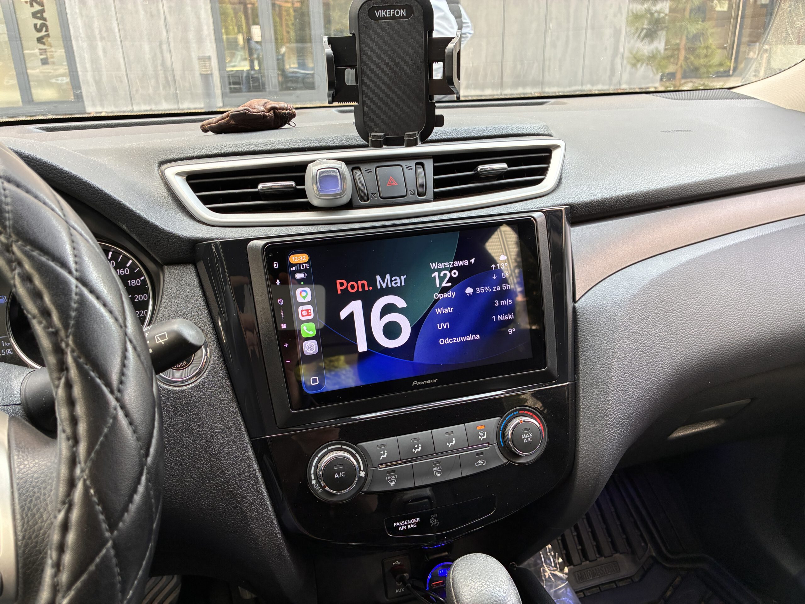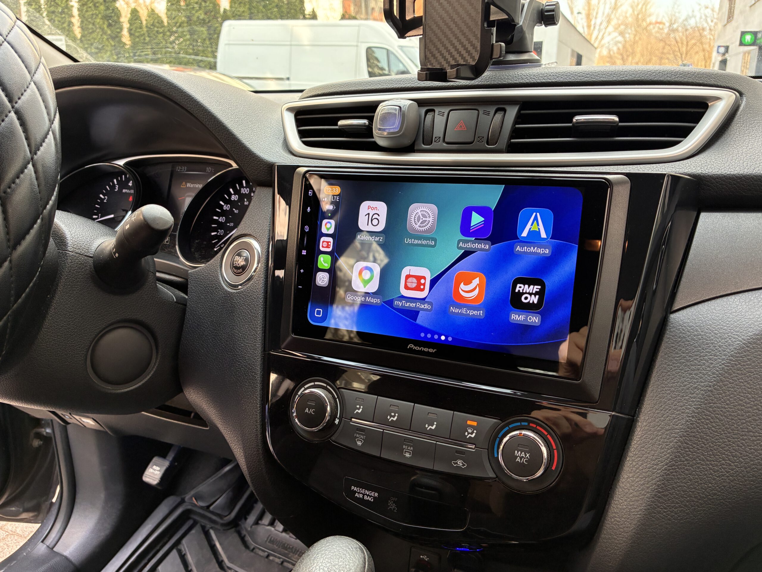- wymiana radia w Nissan Rouge (i pokrewne Qashqai / X-Trail) na jednostkę markową (Pioneer) z 9″ ekranem i bezprzewodowym Android Auto i CarPlay