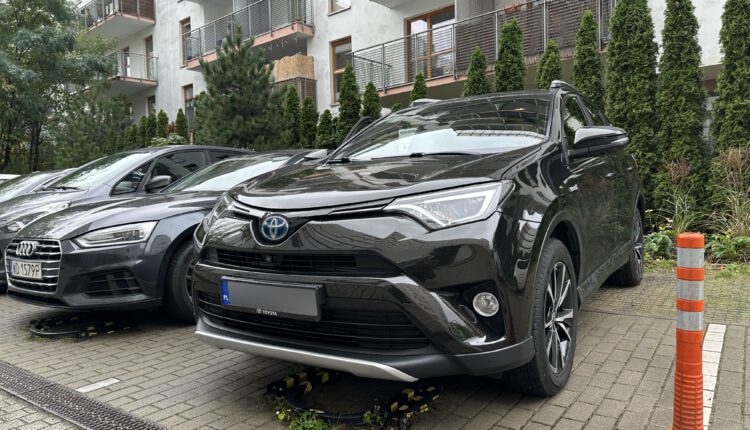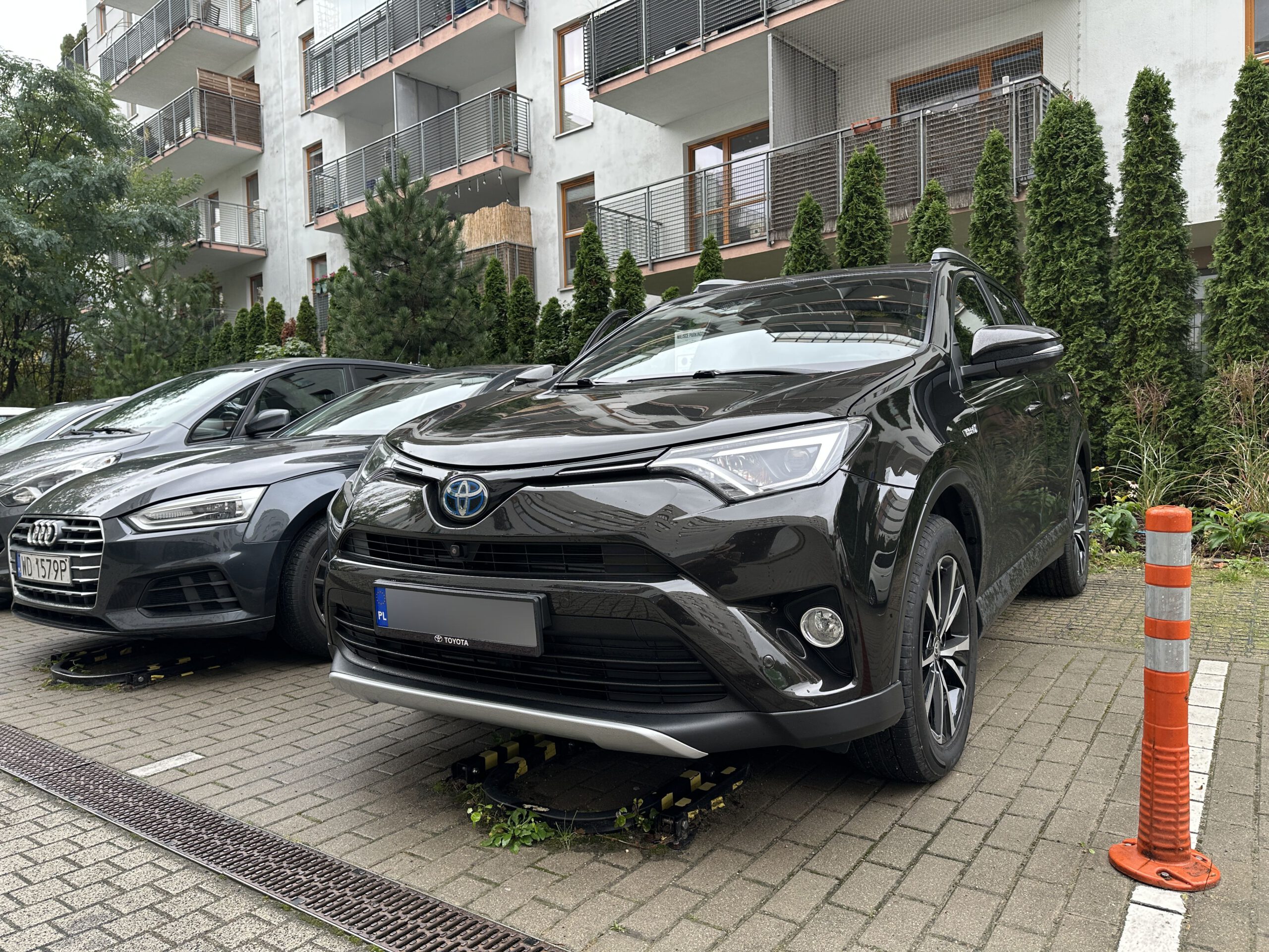 Poniżej widok ogólny z perspektywy kierowcy Toyoty RAV4 (radio wymienione na jednostkę z ekranem 9″, dotykowym)