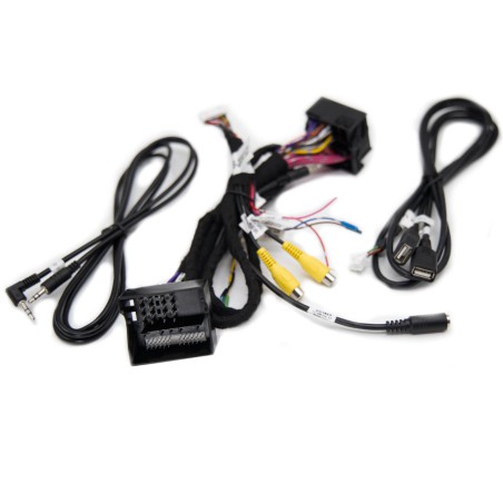 - wiązka główna podłączeniowa (złącza jack: wtyk i gniazdo -> "audio in" i "audio out", złącza RCA x 2: Back Video In, DVR, przewody: ACC, ACC Out, Cam PWR, 360 Det)
