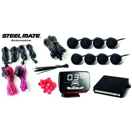 Czujniki parkowania przód-tył Steelmate PTS 800V4 z wyświetlaczem (wizualizacja na wyświetlaczu czujników z przodu i z tyłu). Wielu klientów poszukuje czujników parkowania zarówno na przód i tył pojazdu, które będą posiadały duży, czytelny ekran LCD z pokazywaniem który czujnik wykrył przeszkodę (przód + tył). Takim właśnie produktem jest Steelmate PTS...