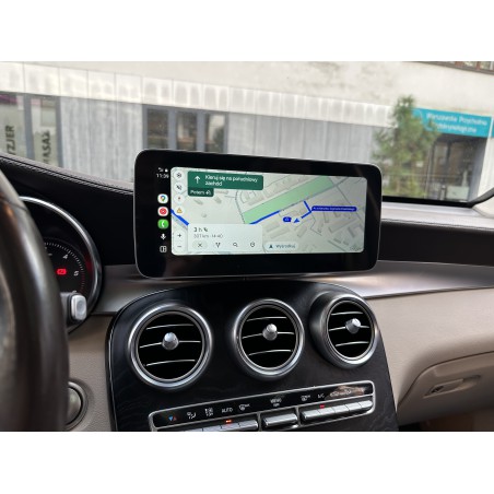Mercedes 2015 - 2020r Bezprzewodowy Android Auto i CarPlay do Mercedesa ekran 10,25 cala dotykowy. Wymiana ekranu na większy nie powoduje utraty fabrycznych opcji radia w Mercedesie. Kompatybilność z fabrycznymi radiami (nawigacjami) NTG 5.0.