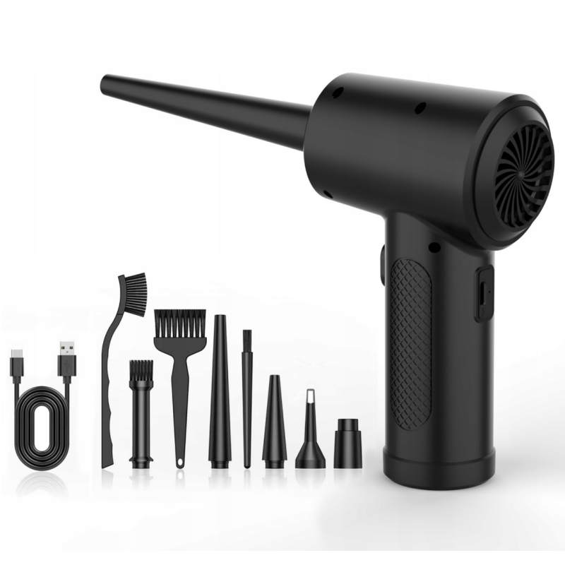Bezprzewodowa dmuchawa elektryczna (np. do czyszczenia auta, przedmuchiwania elektroniki z kurzu, liści). Ładowanie za pomocą złącza USB typ C.
