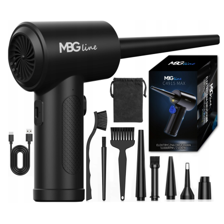 Dmuchawa (siła nadmuchu: 7KPA), akumulator 6000 mAh. 5 końcówek powietrznych. Port ładowania: USB typ C.