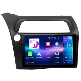 Jak już zaznaczyliśmy ramka pasuje do radia Pioneer SPH-PF97BT z ekranem 9". Jest to radio wspierające Android Auto i CarPlay działające tam bezprzewodowo. Radio to ma tę przewagę nad radiami z Androidem, że z czasem nie będzie spowalniało. Jednostki oparte o system Android w naturalny sposób, przy aktualizacjach aplikacji i stałej pamięci RAM, będą z czasem wolniejsze. Radio SPH-PF97BT nie ma tego problemu ponieważ cały interfejs jest w Twoim telefonie. Jeśli do tego radia dokupisz moduł sterowania z kierownicy i adapter antenowy, masz komplet do montażu w Hondzie Civic (tzw. UFO).