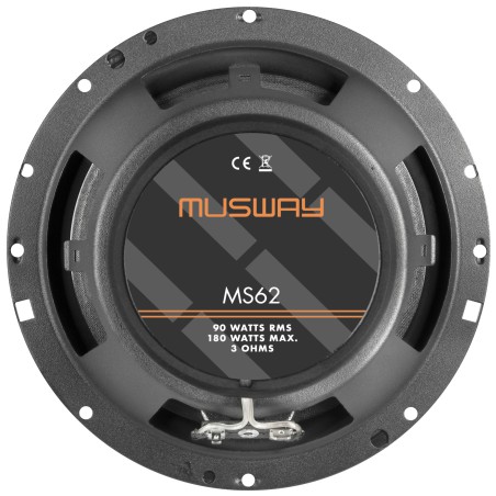Zestaw głośników 6,5" współosiowych 2-drożnych. Ten prosty zestaw głośników to najprostsza opcja poprawy nagłośnienia w Twoim aucie lub po prostu zastąpienia niesprawnych głośników 16,5 cm. Zastosowano tu membranę z kompozytu papierowego i włókien bambusowych, co zapewnia dobre tłumienie. Odpowiadające za wysokie dźwięki tweetery zintegrowane to 20 mm głośniki z jedwabną kopułką. Głośniki Musway MS62 to dobre rozwiązanie jeśli chcesz wymienić niedziałające głośniki 16,5 cm (6,5") na zestaw współosiowych głośników.