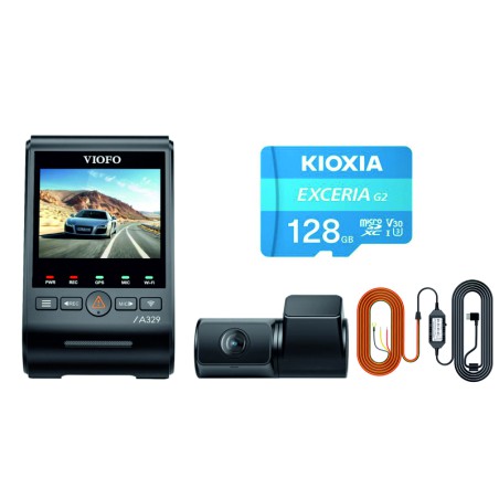 Zestaw: kamera przód + tył (4K + 2,5K) z HDR), adapter do trybu parkingowego, karta pamięci Kioxia 128GB