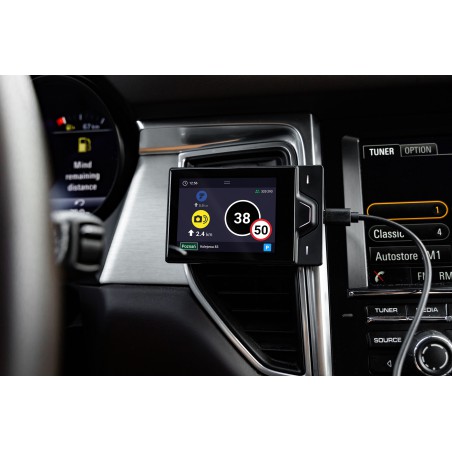 Po przekroczeniu prędkości o 50 km/h urządzenie generuje czytelny alert wizualny i dźwiękowy – to praktyczne przypomnienie, by zdjąć nogę z gazu.