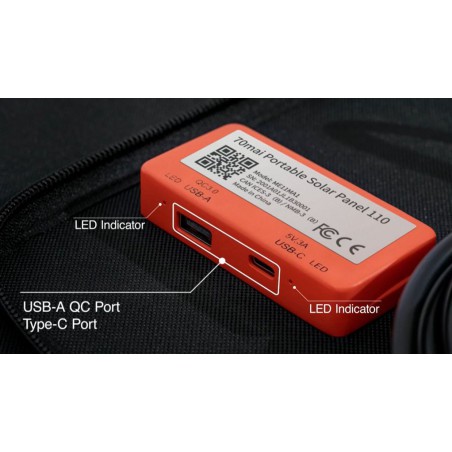 Łatwe do przenoszenia i jeszcze łatwiejsze do użytkowania panele słoneczne z wyjściami USB do zasilania urządzeń lub do ładowania stacji zasilania Tera 1000. Moc znamionowa 110W, sprawność 22%. Panel monokrystaliczny, port MC4. W zestawie: przewód MC4 oraz Anderson. Wymiary rozłożonych paneli: 71,6x118,8cm, waga ok. 5kg.