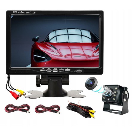 Bezprzewodową kamerą oraz monitor 7 cali do kamperów, ciężarówek aut dostawczych, maszyn rolniczych. Możliwość rozbudowy o dodatkowe kamery. Maksymalna ilość obsługiwanych kamer przez monitor 4. Funkcja rejestracji wyświetlanego obrazu na kartę pamięci 64GB..