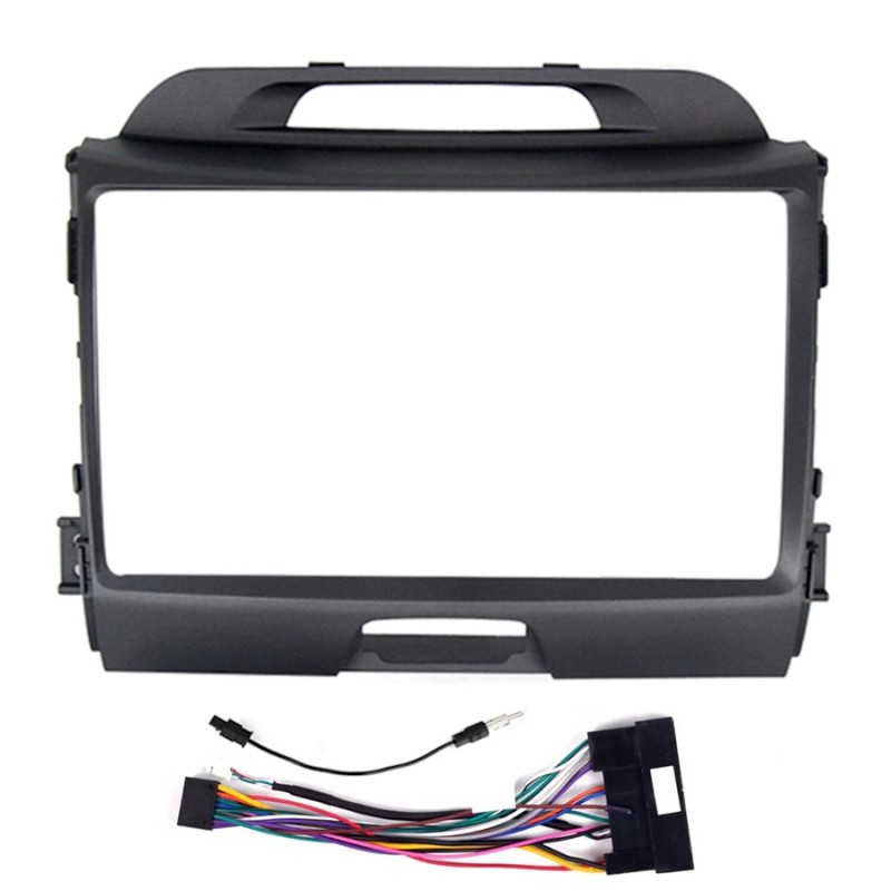 Zestaw do montażu radia 9 cali o charakterystycznym kształcie trapezoidalnym (np. Pioneer 97BT lub analogiczne radia marki Clarion) oraz jednostki typowo chińskie. Należy zwrócić uwagę, że radio zakłada się przy tej ramce od spodu, nie zaś jak zazwyczaj radio wchodzi w ramkę (zatem jeśli radio ma jakieś przyciski lub ikony obok ekranu, to mogą być one zasłonięte ramką - z radiem Pioneer 97BT problem ten nie występuje). Zestaw składa się z ramki pod radio 9" oraz złącza montażowego i przejściówki pod antenę.